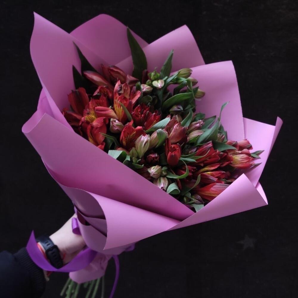 Альстромерия – 19 шт.Лента атласная – 1 шт.Упаковка матовая – 1 шт.
