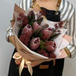 Протея и розы в ярком букете «Луна моей жизни»