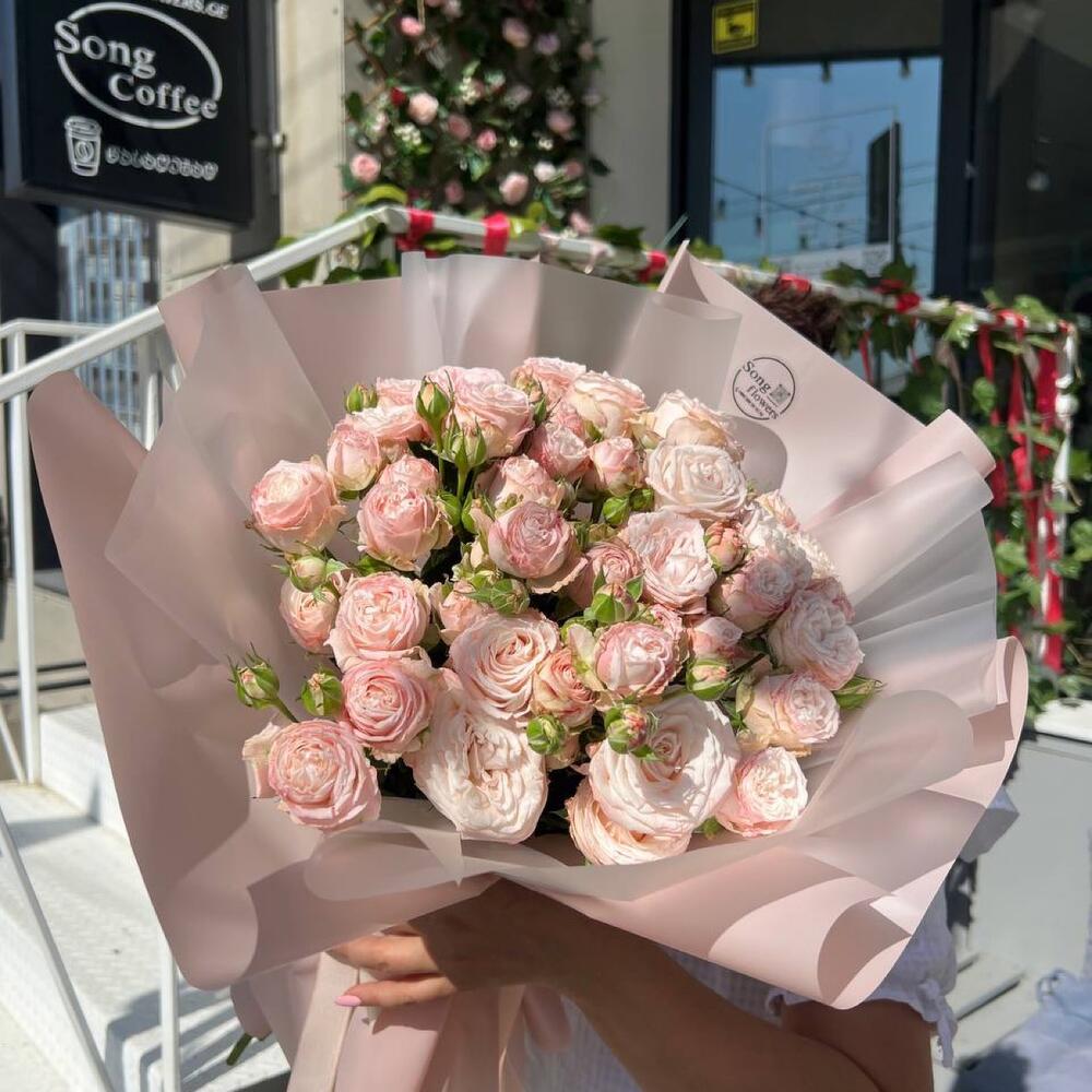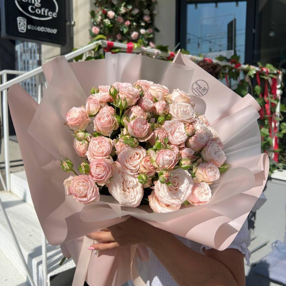 15 пионовидных кустовых роз монобукет