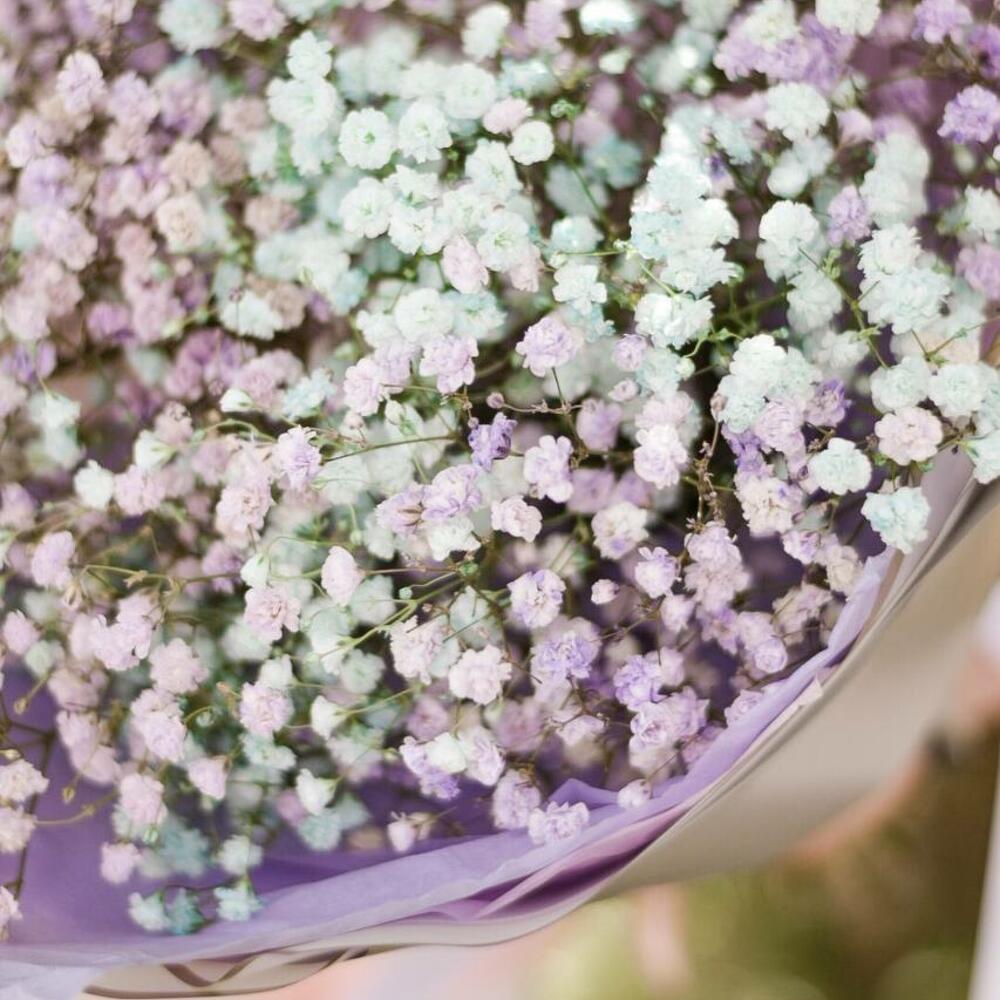«Лавандовое созвездие» Букет из розы, гвоздики, статица и хлопка