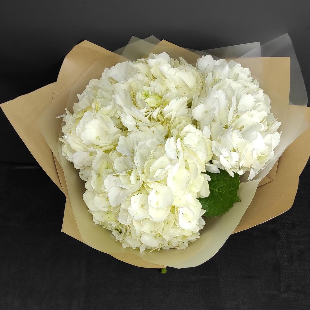 Букет из 3 белых кустовых хризантем в стильной упаковке