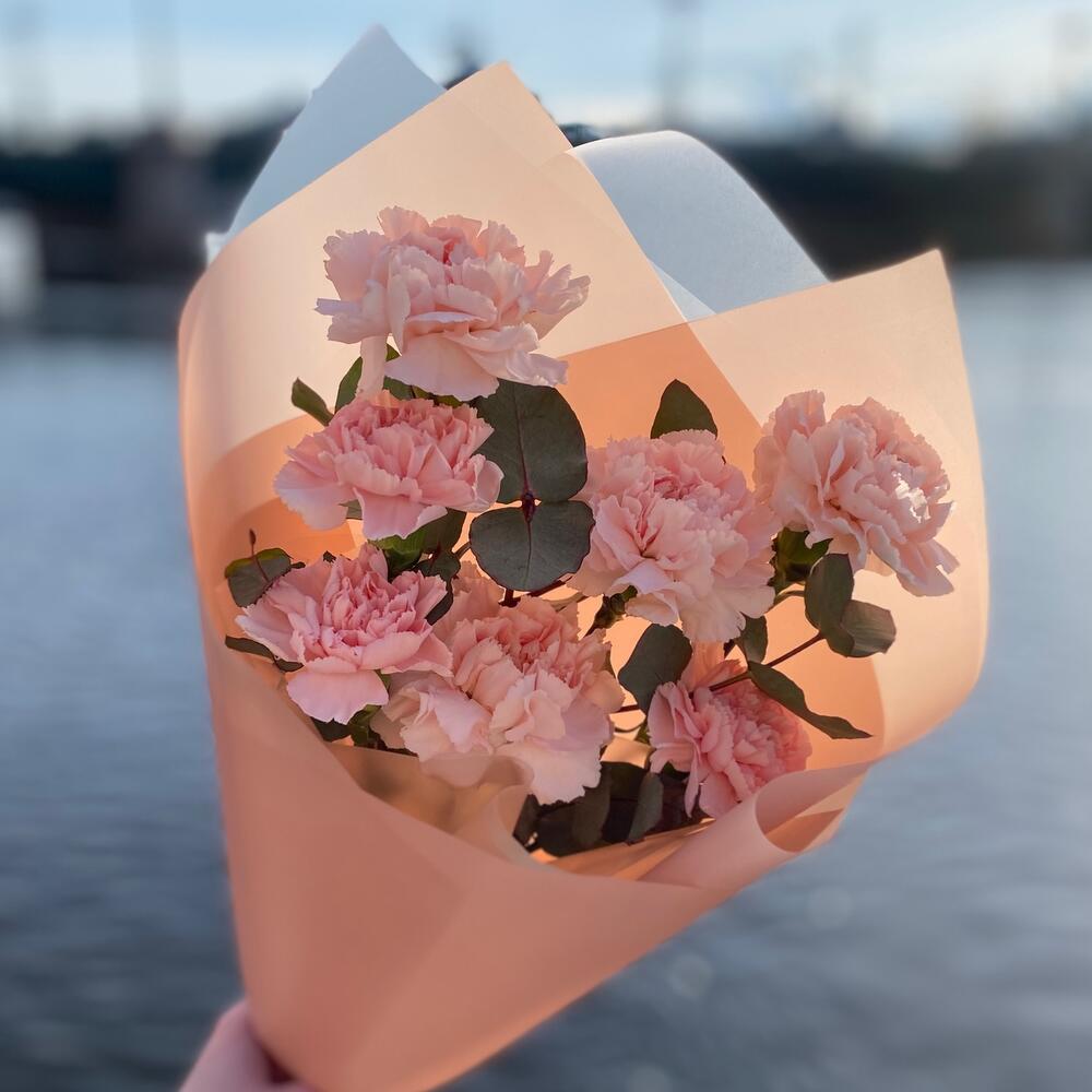 Букет гвоздик с эвкалиптом «Бэлла»