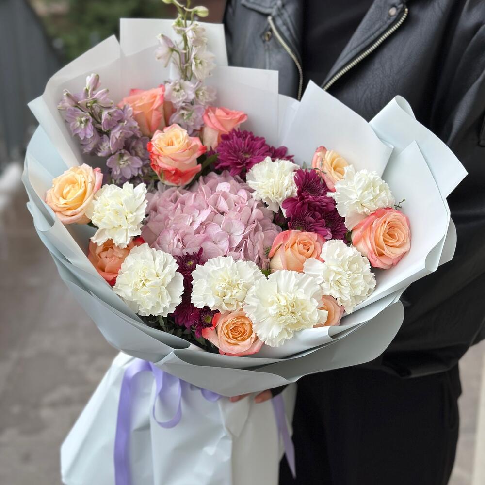 Гвоздики, Кустовые розы, Лизиантусы, Пионовидные розы, Розы