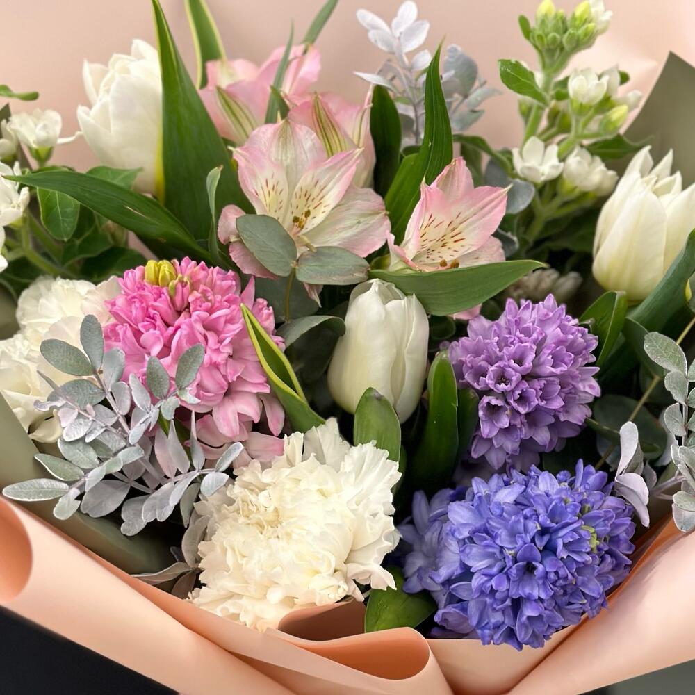 Букет с гиацинтами и тюльпанами