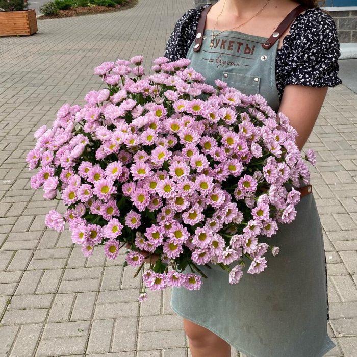 Охапка розовых Сантини шикарный , пышный , ароматный букет . Который несомненно подарит море приятных мгновений и атмосферу лета .