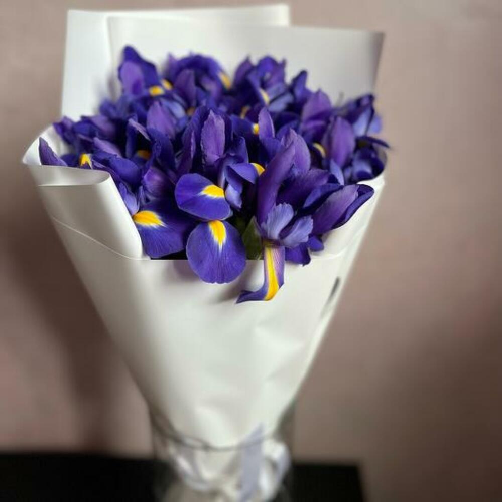 ирисы – 15 шт.декоративная упаковка – 1 шт.Атласная лента – 1 шт.