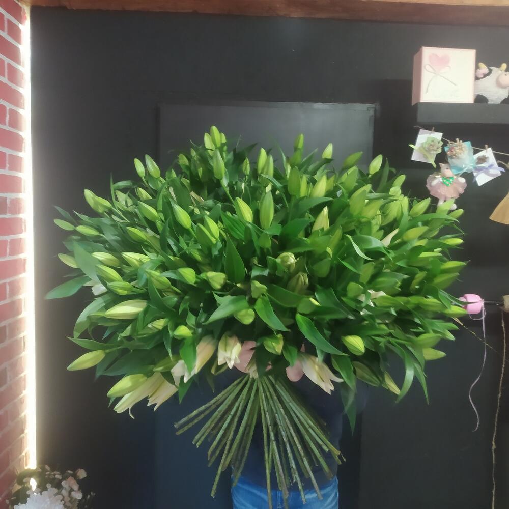 Лилия белая – 51 шт.Лента атласная – 1 шт.