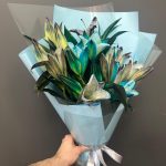 Лента атласная – 2 шт.Упаковка корейская пленка – 2 шт.лилия крашенная – 9 шт.