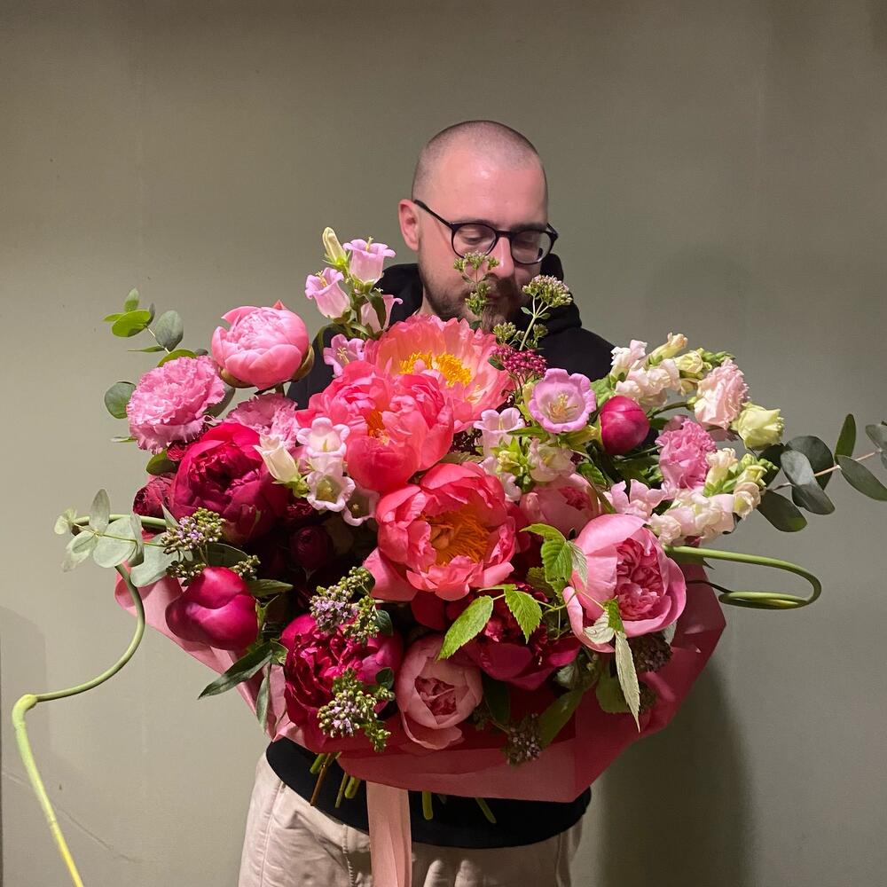 Букет из коралловых пионов