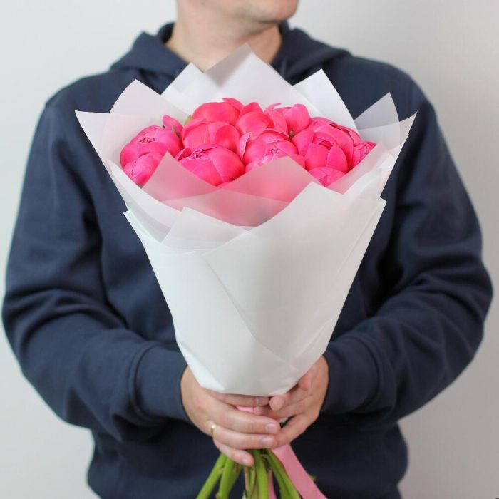 15 коралловых пионов. Букет 15 KimFlo