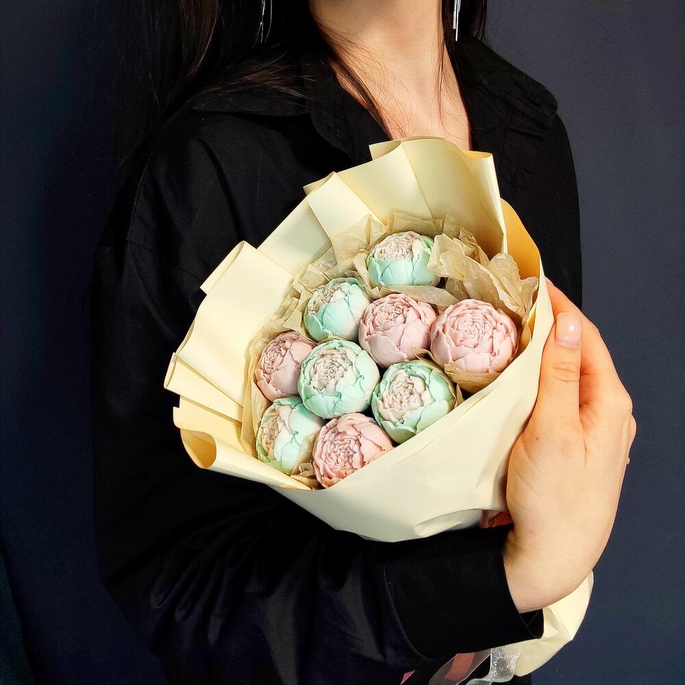 пион из белого бельгийского шоколада – 9 шт.Упаковка дизайнерская – 2 шт.