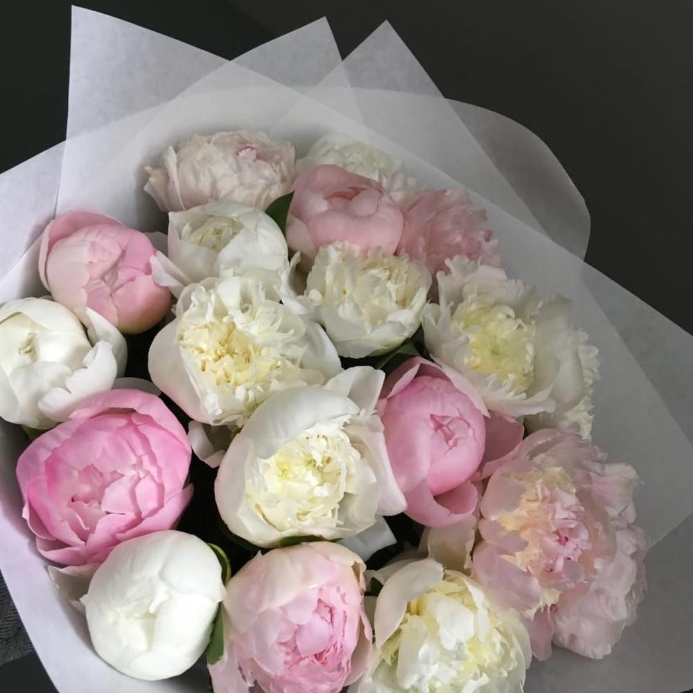 Пион – 19 шт.Лента атласная – 2 шт.Упаковка дизайнерская – 2 шт.