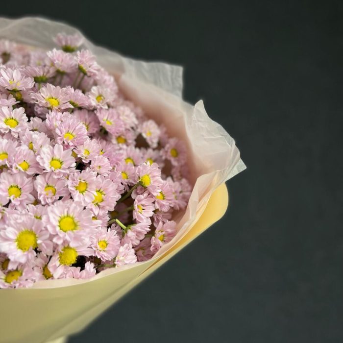 ромашка сантини – 15 шт.декоративная упаковка – 1 шт.Атласная лента – 1 шт.