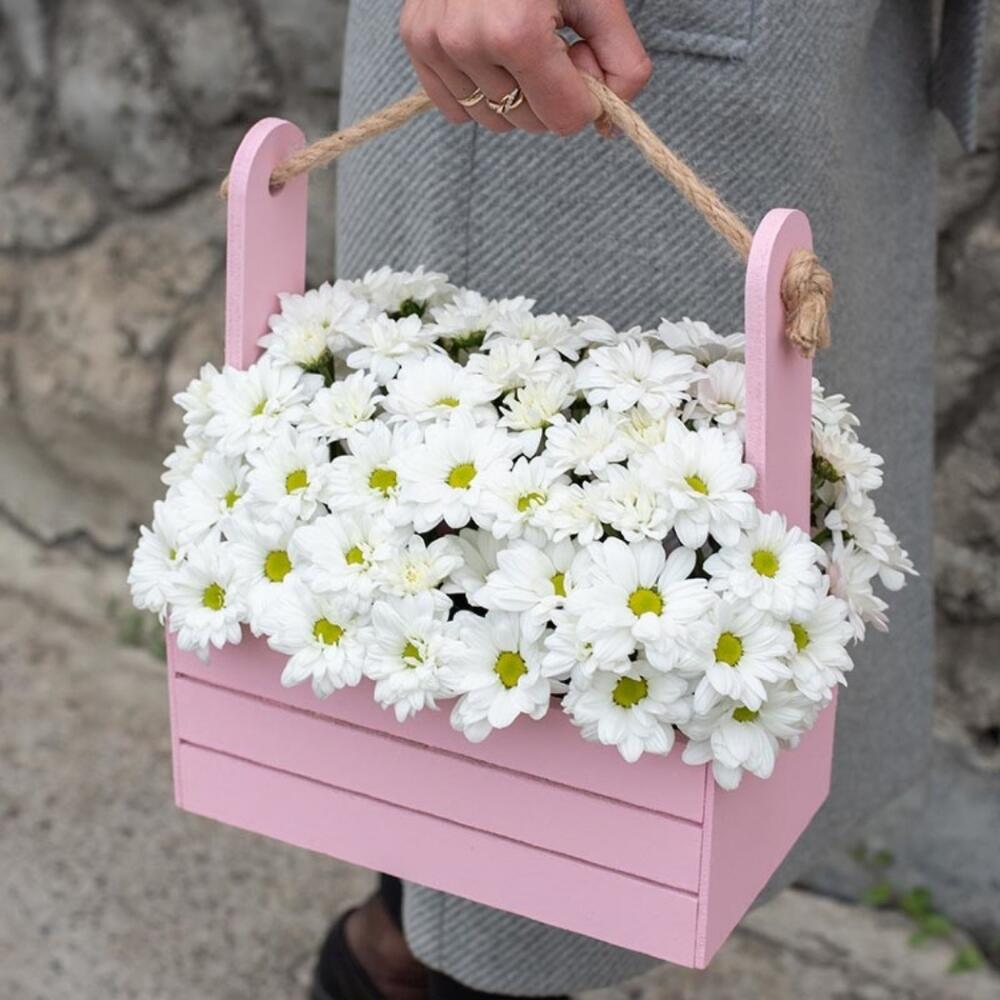 Стильный деревянный ящик с белыми ромашками Для самой любимой девушке