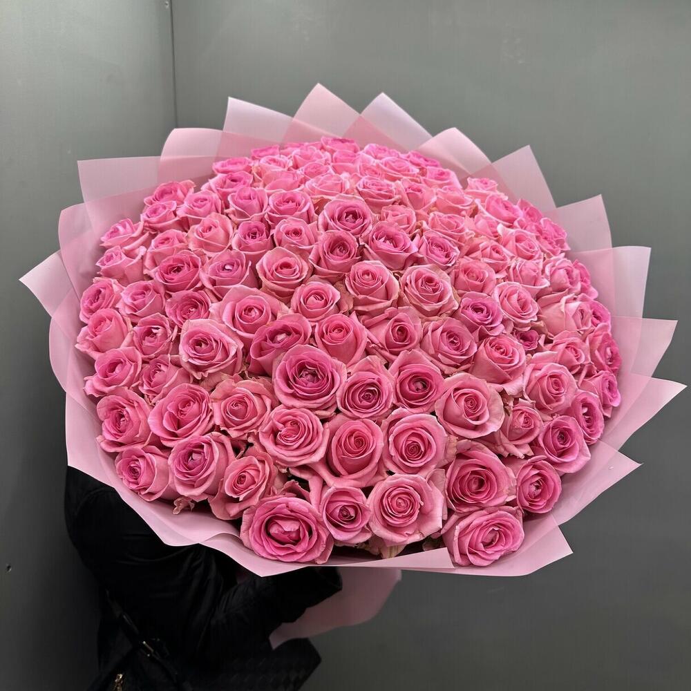 Лента атласная – 1 шт.Дизайнерская упаковка – 5 шт.розы эквадор (60 см) – 101 шт.