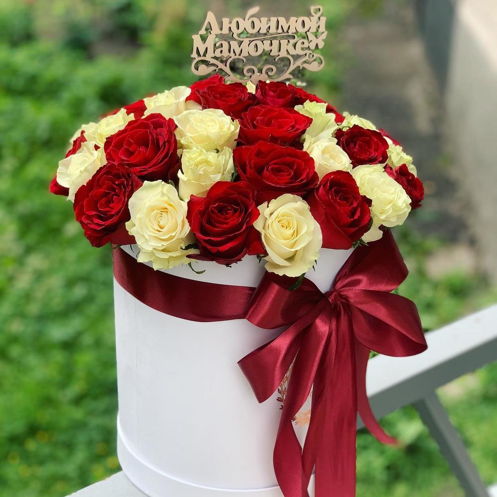 Роза – 39 шт.Коробка – 1 шт.Топпер – 1 шт.Оазис флористический – 1 шт.