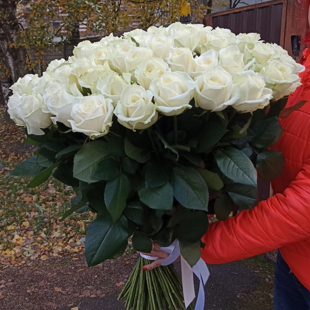 Букет 101 Белая Роза 70см