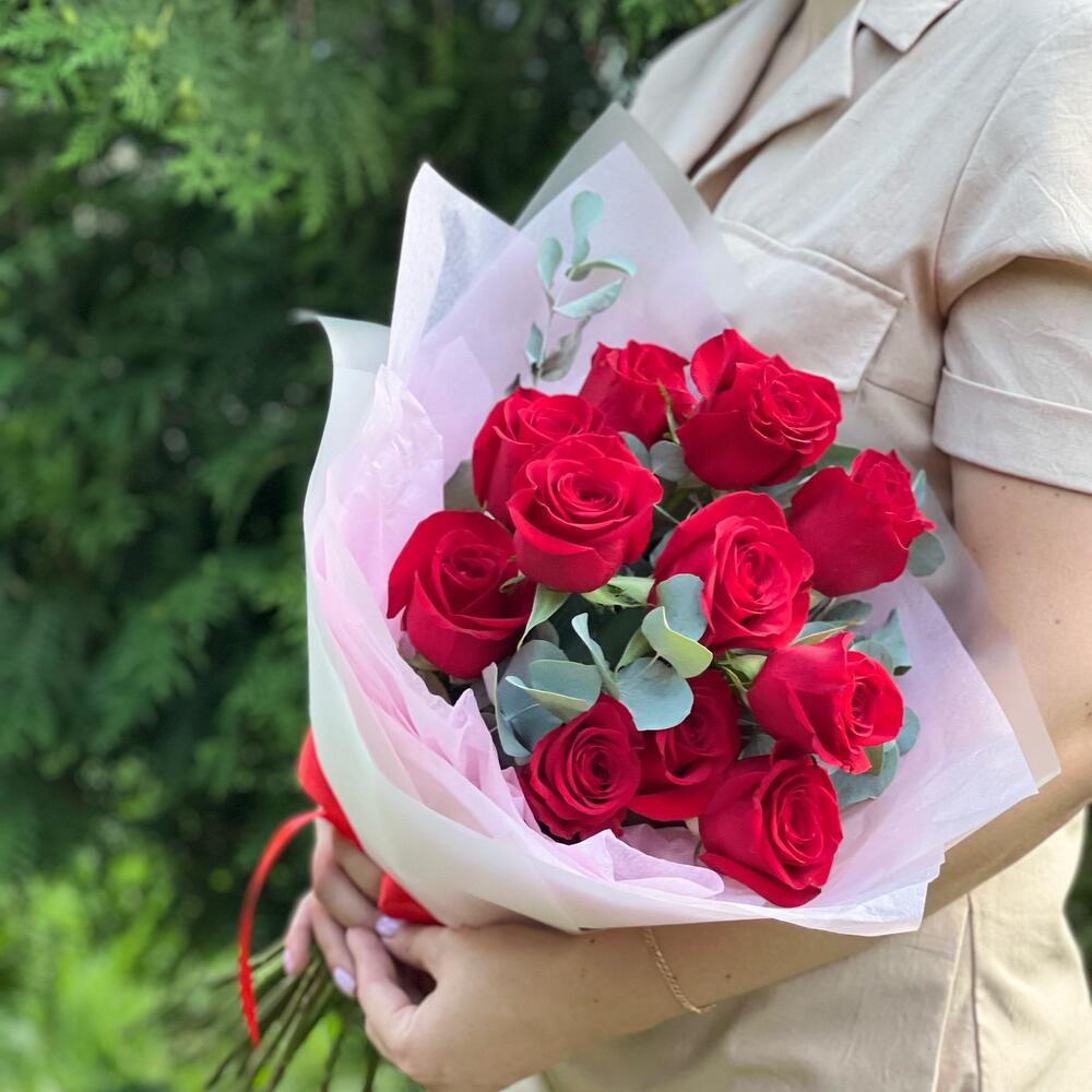 Букет из 11 Роз с эвкалиптом