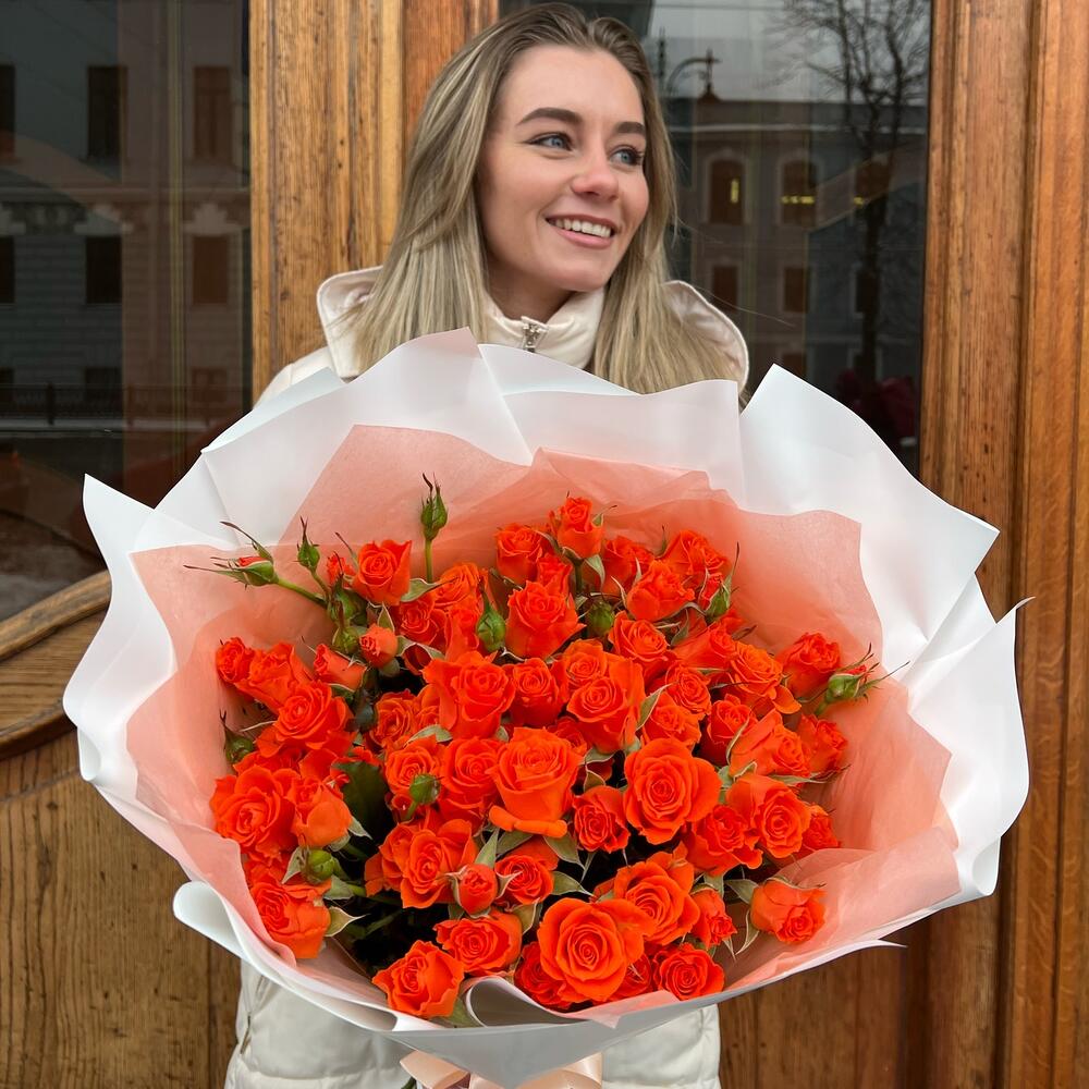 Букет из 15 кустовых роз 60см