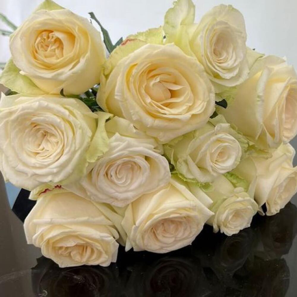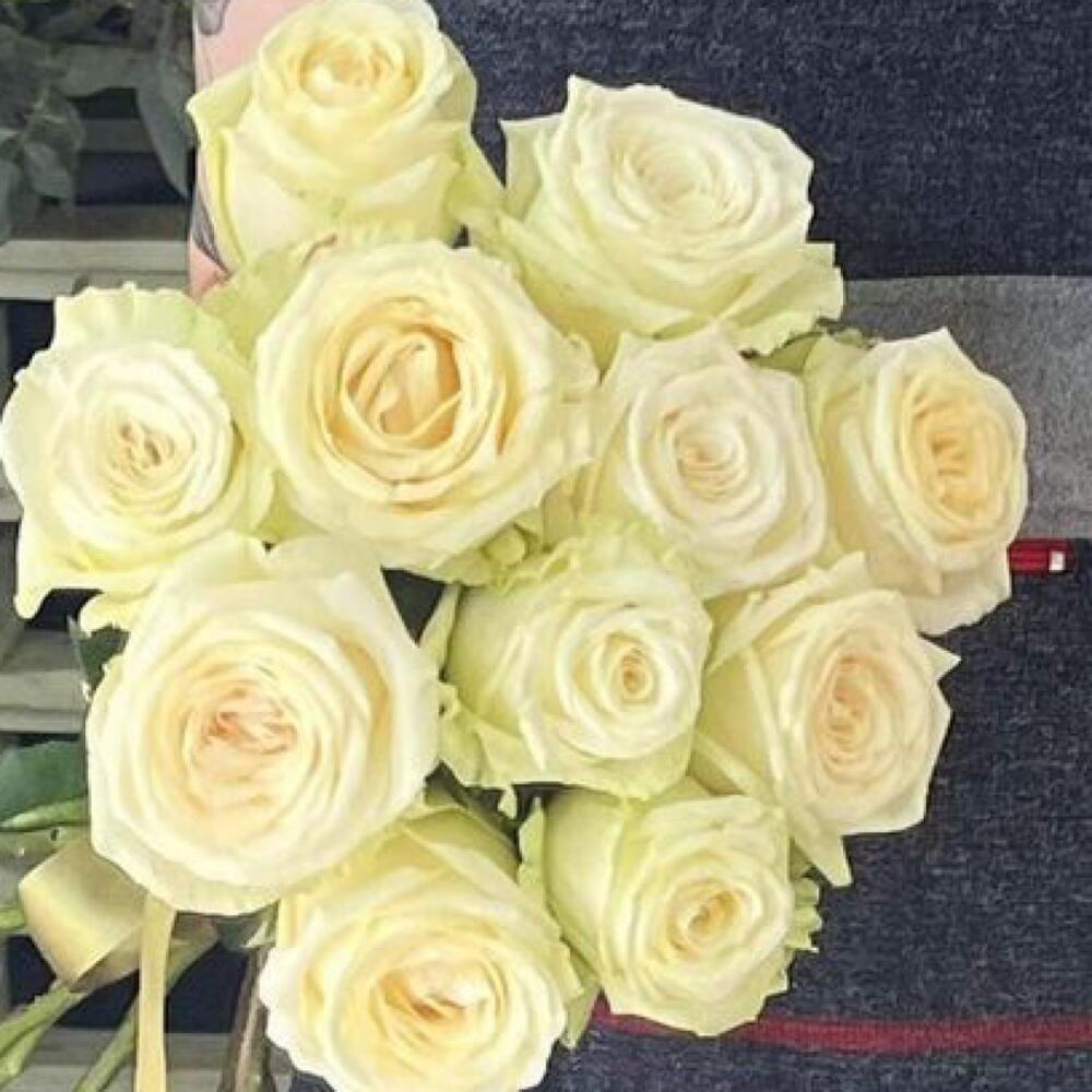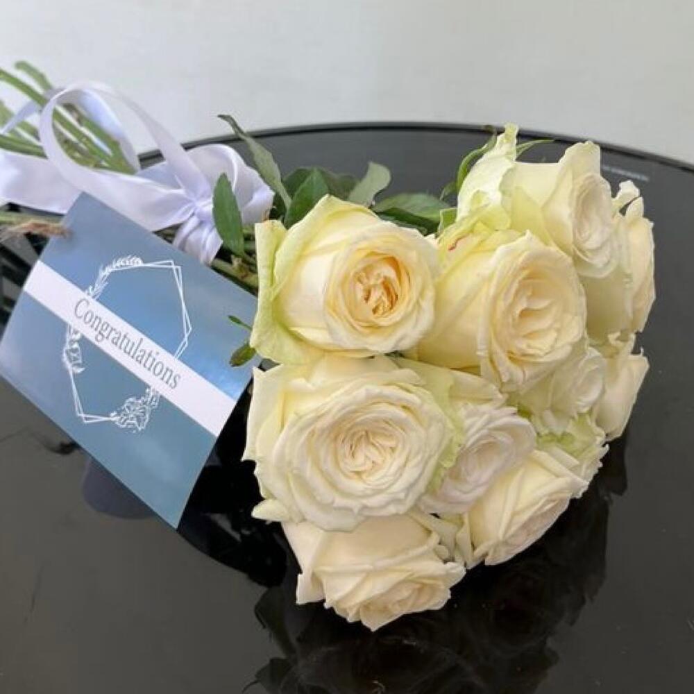Лента атласная – 1 шт. Открытка – 1 шт. розы белые – 11 шт.