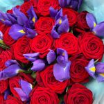 Букет из Красных Роз и Ириса 60см