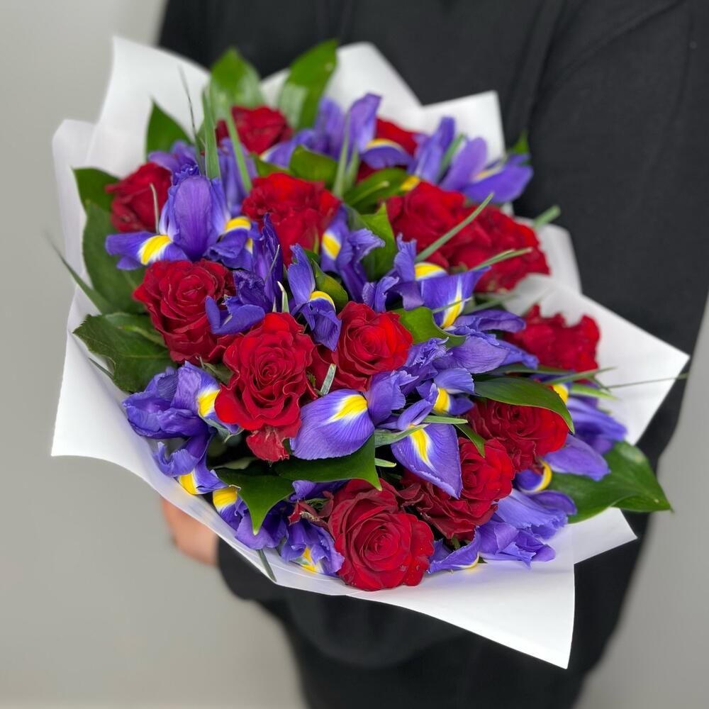 Букет из красных роз с ирисами (сб 011)