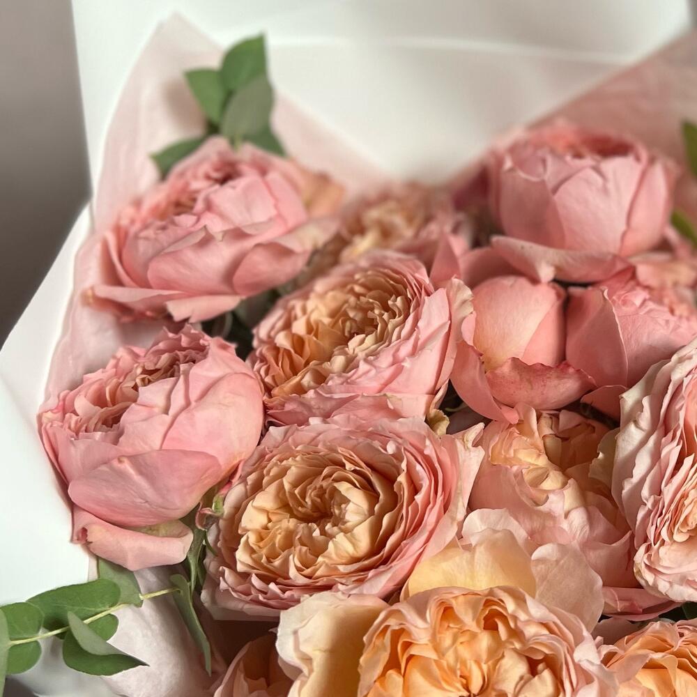 Букет из кустовой пион розы с эвкалиптом (СБ 001)