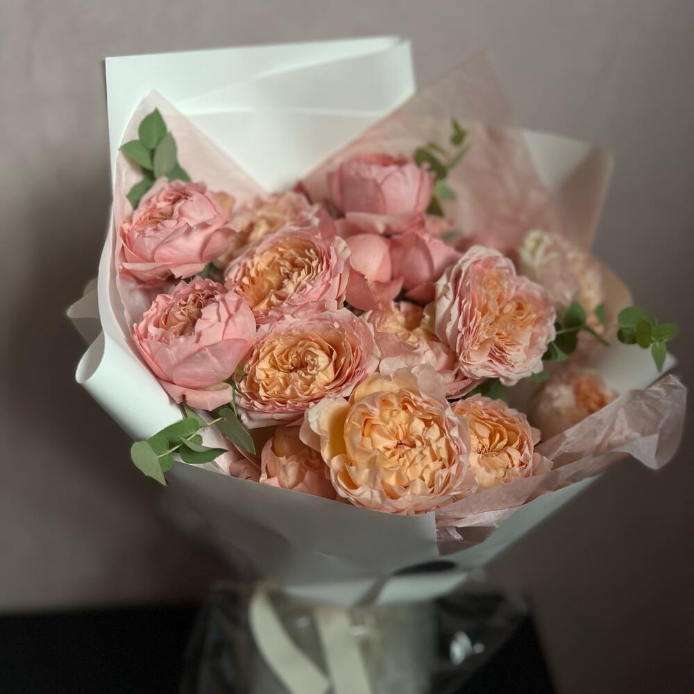 Букет из кустовой пионовидной розы "Mansfield Park"