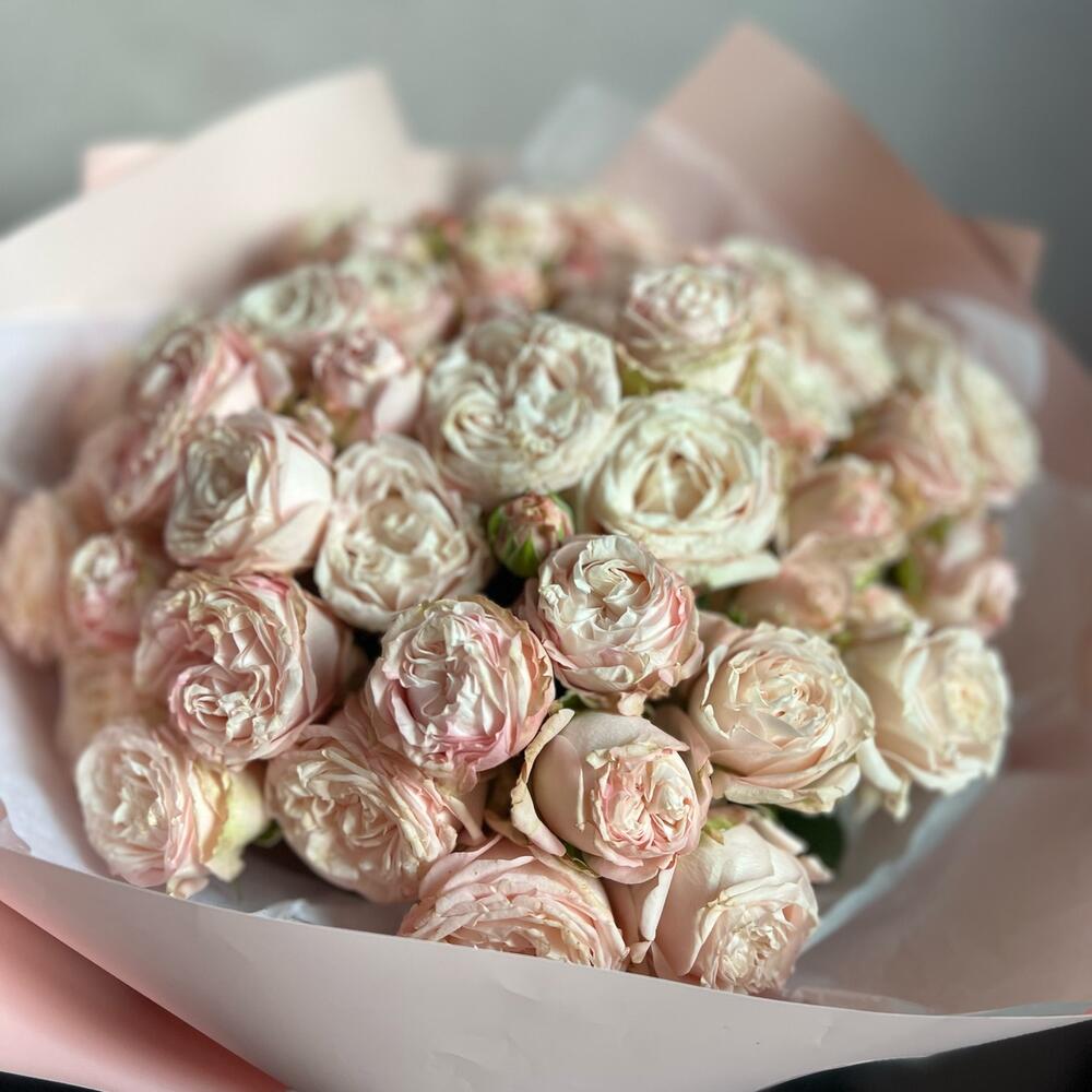 Кустовая пионовидная роза – 15 шт.декоративная упаковка – 1 шт.Атласная лента – 1 шт.