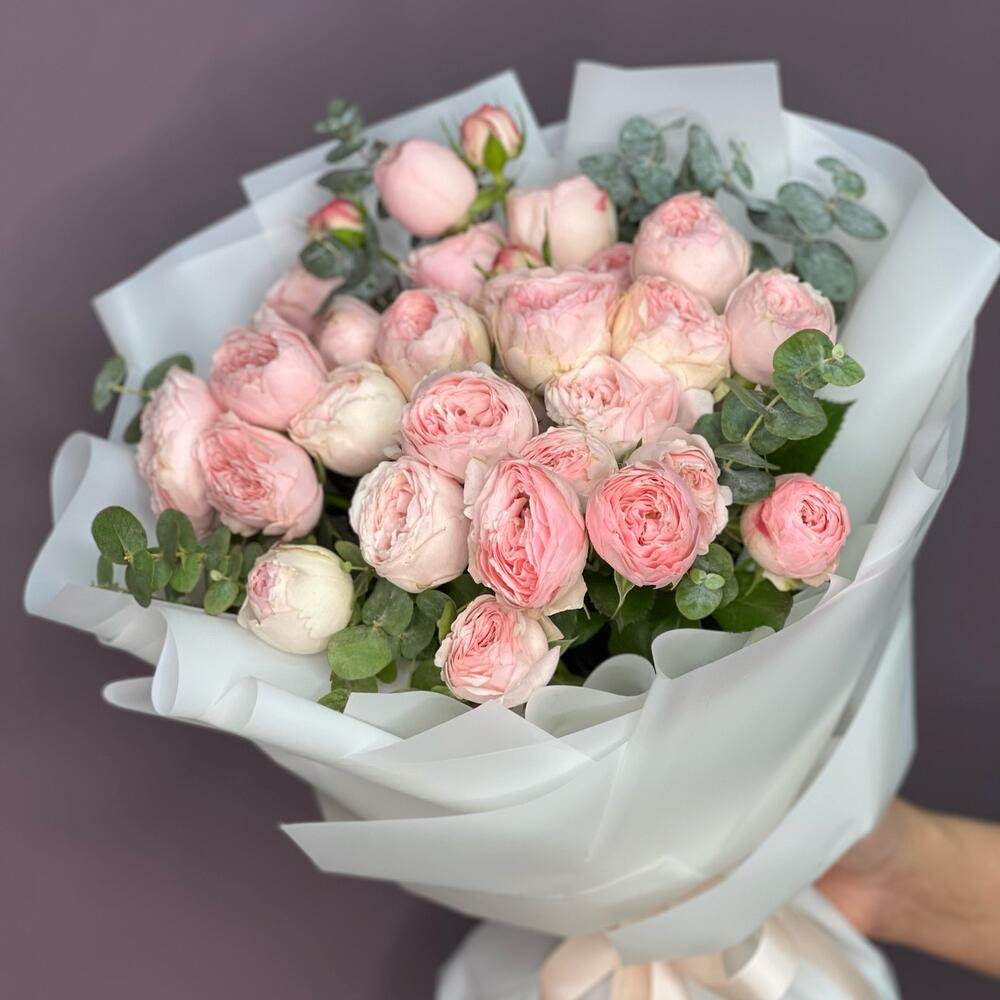 Гвоздики, Кустовые розы, Лизиантусы, Пионовидные розы, Розы