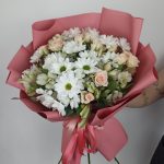 Букет с кустовыми розами и хризантемой