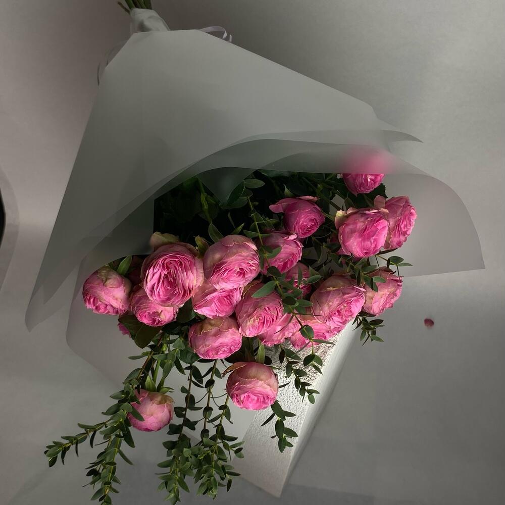 кустовая роза жизель – 5 шт.Эвкалипт – 1 шт.Пленка матовая – 1 шт.