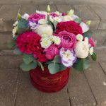Альстромерии, Гвоздики, Кустовые розы, Лизиантусы, Розы, Хризантемы