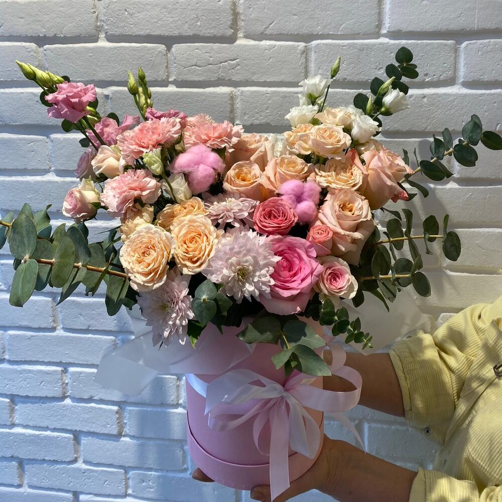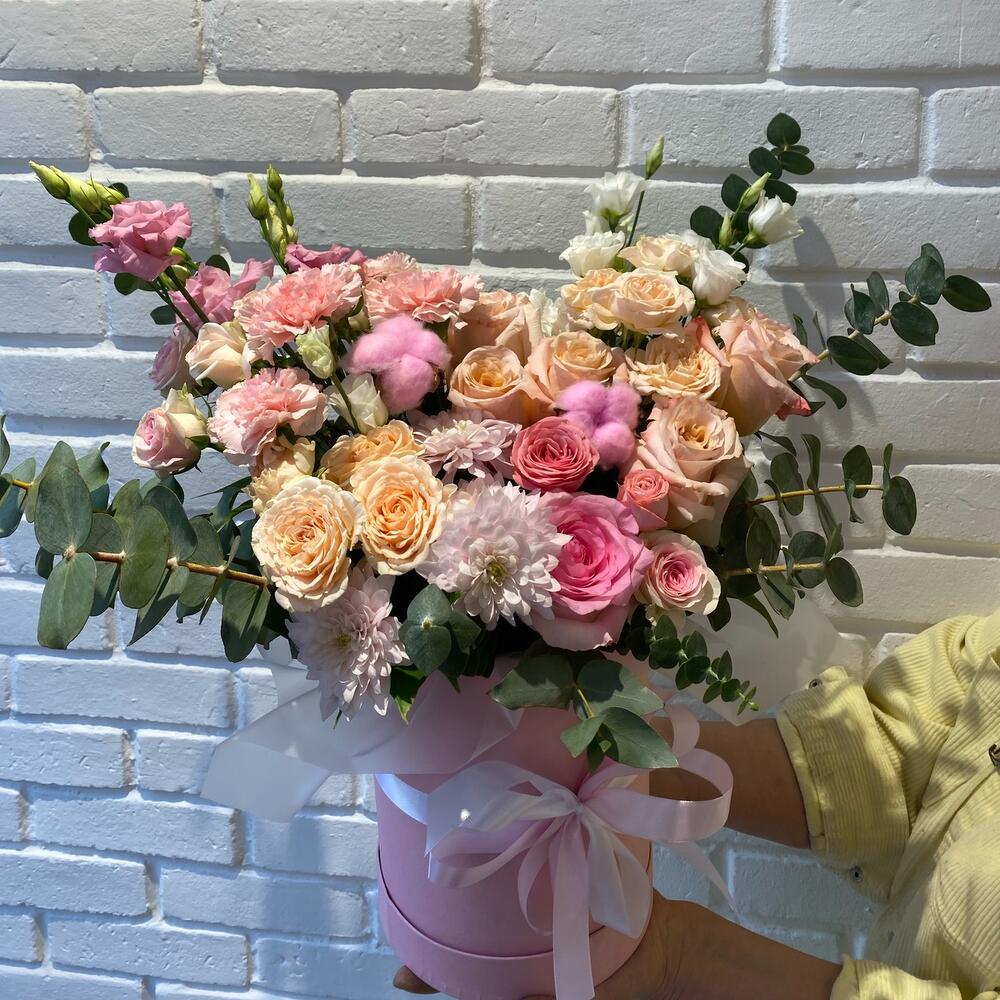 Альстромерии, Гортензии, Кустовые розы, Лизиантусы, Розы, Хризантемы