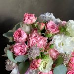 Букет из кустовой пионовидной розы и эвкалипт