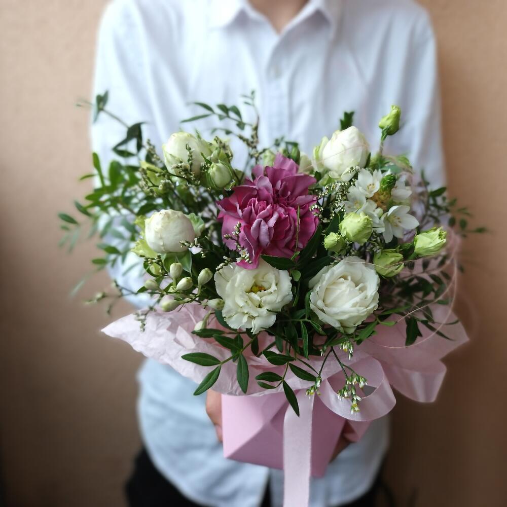 Категорий: Гвоздики, Кустовые розы, Лизиантусы, Пионовидные розы, Розы