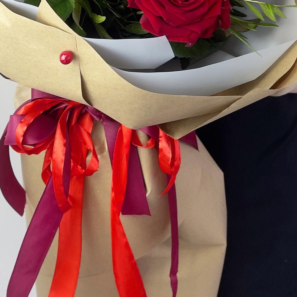 Красные розы в крафт