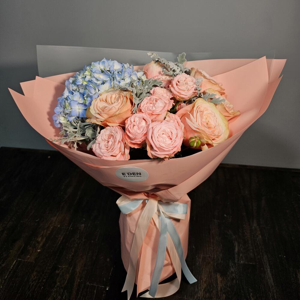 Альстромерии, Кустовые розы, Лизиантусы, Пионовидные розы, Розы, Ромашки