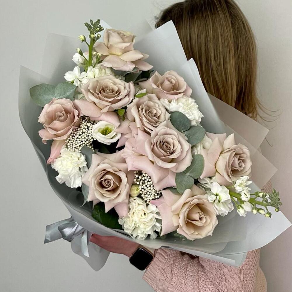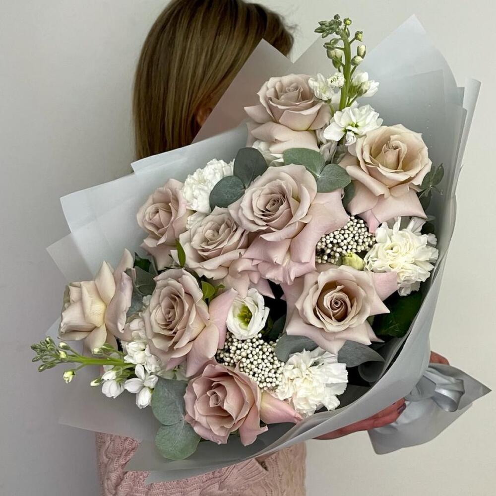 Кустовые розы, Лизиантусы, Розы, Сухоцвет