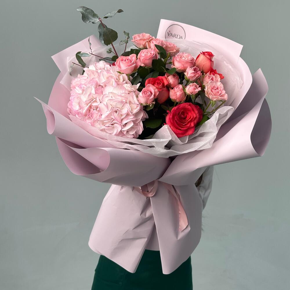 Альстромерии, Кустовые розы, Лизиантусы, Пионовидные розы, Розы, Ромашки