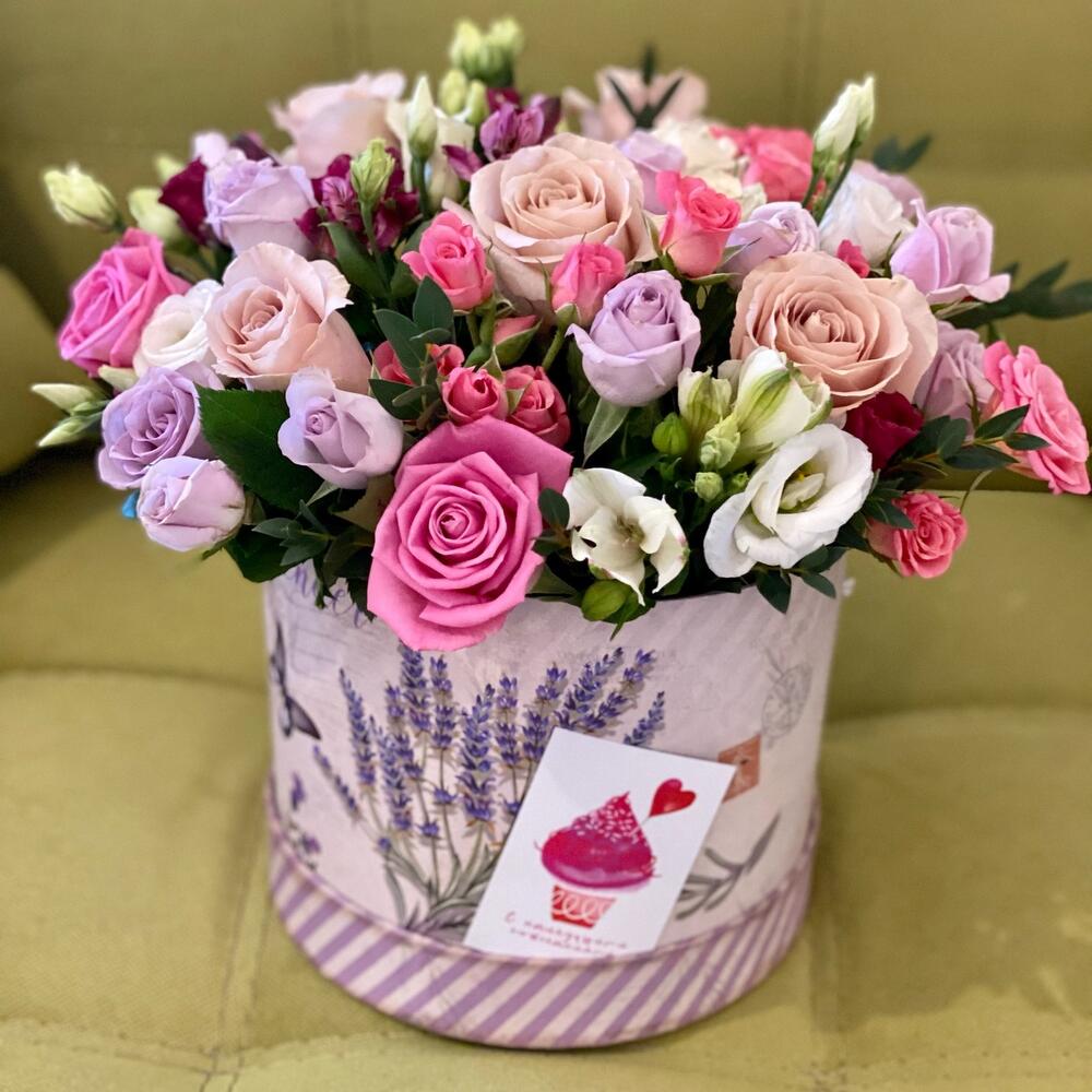 Шляпная коробка с миксом из роз