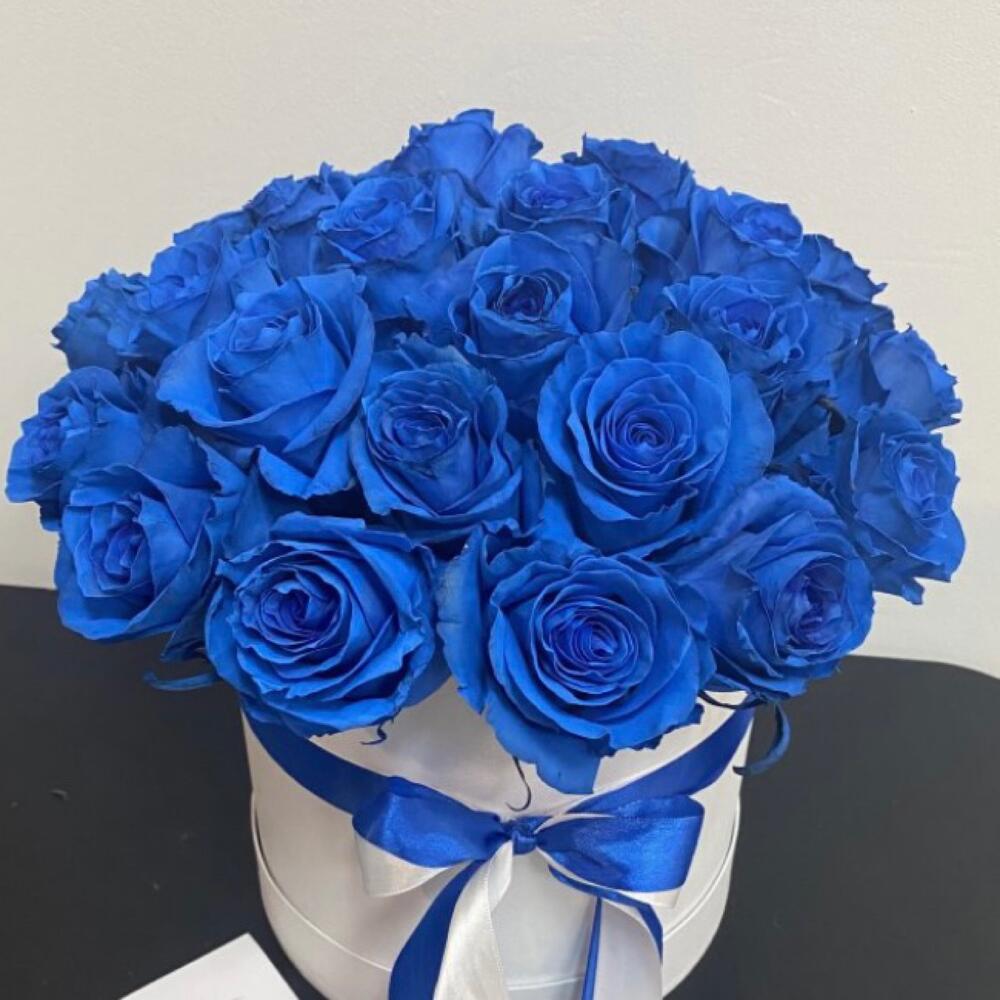 Шляпная коробка – 1 шт.синие розы эквадор – 25 шт.