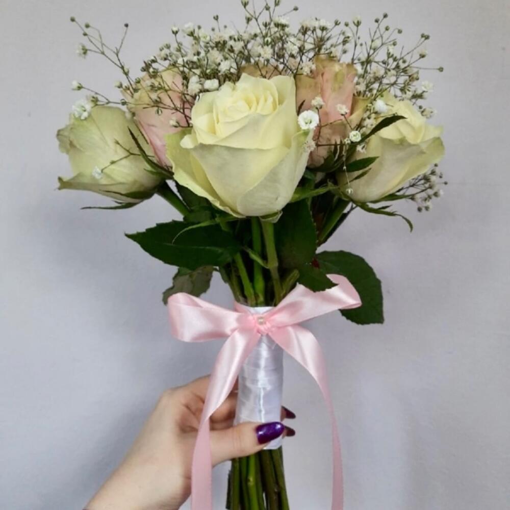 гипсофила белая – 4 шт.роза микс – 29 шт.