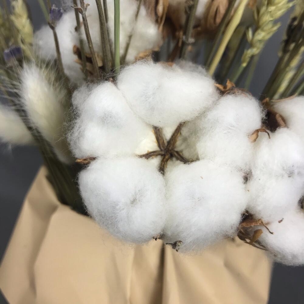 Хлопок натуральный – 7 шт.Лаванда (сухоцвет) – 40 шт.Пшеница (сухоцвет) – 30 шт.Коробка шляпная – 1 шт.ларгус – 5 шт.
