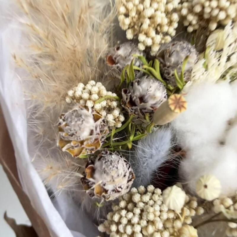 Лимониум – 1 шт.Озотамнус – 1 шт.Хлопок – 2 шт.Эвкалипт – 2 шт.Пшеница – 2 шт.Капс – 2 шт.Упаковка дизайнерская – 1 шт.Лен – 1 шт.Лагурус – 8 шт.Мак – 4 шт.Флум – 11 шт.пампасная трава – 1 шт.