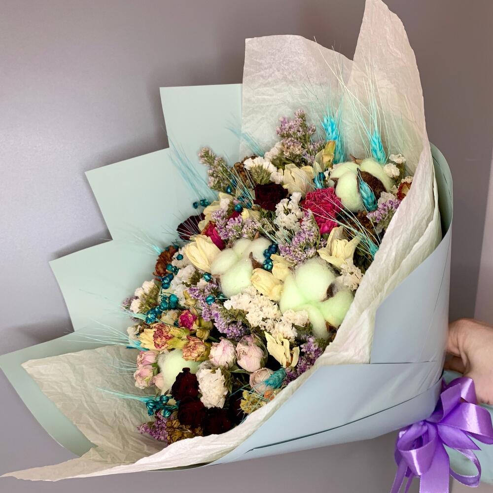Красочный букет из хлопка и различных сухоцветов