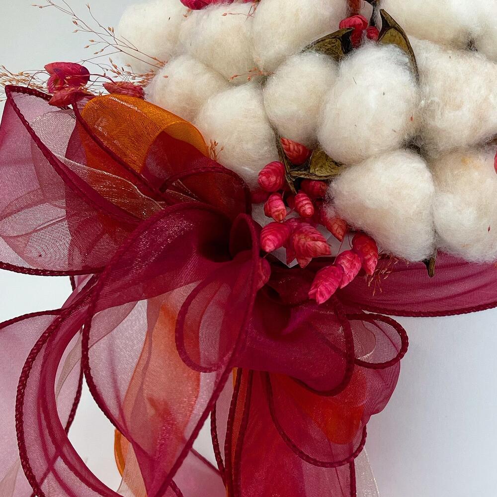 Яркая композиция из хлопка в коробке с сухоцветами идеально подойдёт в качестве подарка или для интерьера в доме .